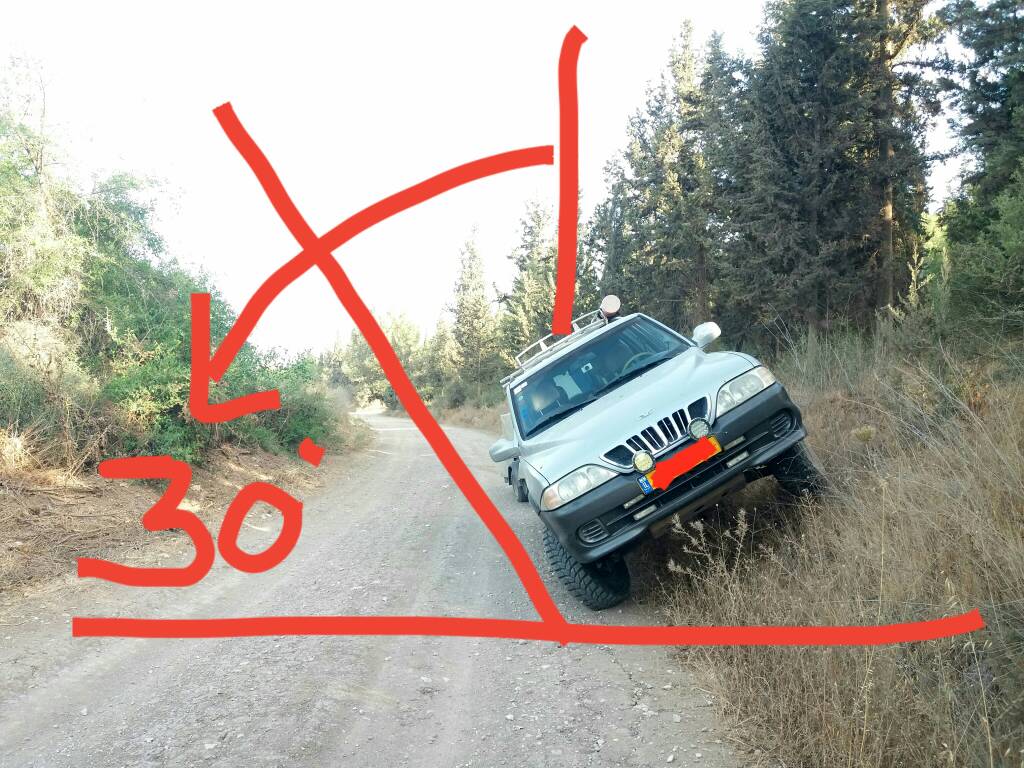 אם זו נקודה שאתה חושש ממנה, אז כדאי אולי להשתמש באחת האפליקציות בטלפון המודדות את הזווית כל פעם שאתה עובר קטע עם שיפוע צד ולקבל לאט לאט תחושה מהן הזוויות שאין כל בעיה לרכב לעבור בהן. מעבר לזה לא הייתי מסתמך על מדידת זווית בלבד.