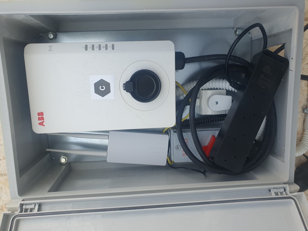 ארון עמדת הטעינה (כש VTOL + כבל המתאם מחובר לשקע המחזיר מתח לבית) :