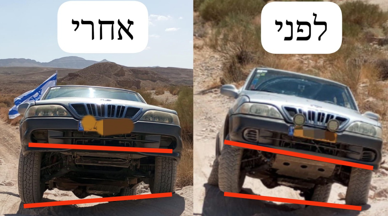 אפשר לראות בתמונות את המתלה הקדמי, לפני ואחרי: