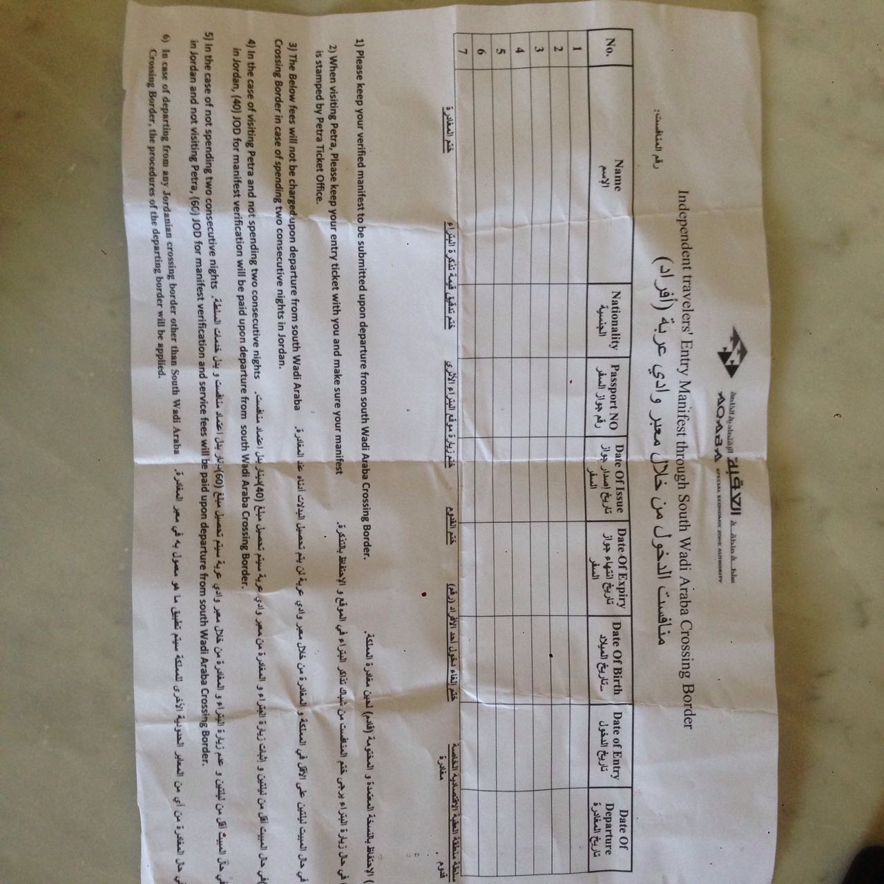 לצערי במעבר הצפוני לפני התשלום על הויזות ( התחנה הראשונה. פחות מ 3 לילות 40 דינר לאדם מ 4 לילות והילך 10 דינר ) נשלחתי למשטרת התירות.