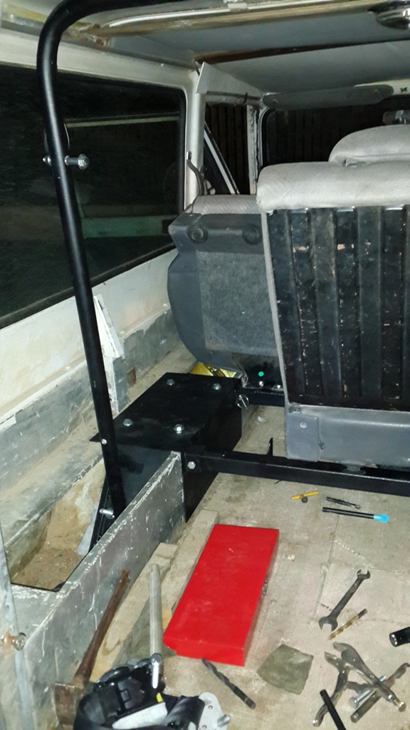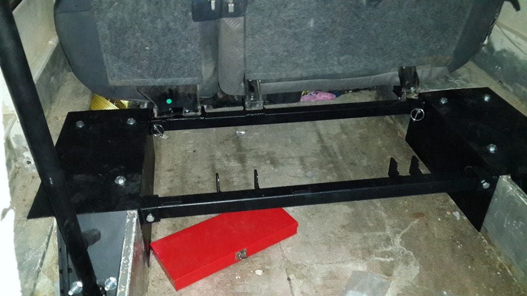 נותר עוד לעגן את תופי חגורות הבטיחות אל הצינור בצורת ח' שעליו נשען גב המושב, לייצר אוזן שתחובר אל הצינור ואליה יינעל גב המושב, ולעגן את הנקודות העליונות של חגורות הבטיחות- גם הן אל ה"ח" התומכת את גב המושב.