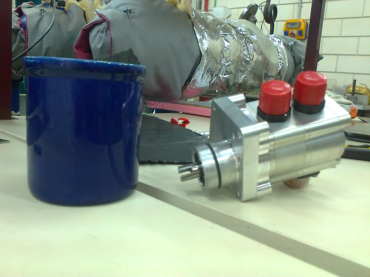 נראה לי שסיפרתי על חלק מזה אבל נספר שוב. הספיקת שמן של המנוע היא ליטר בחמש שניות בערך. משאבה חשמלית שתעשה את זה לא מצאנו, בטח לא עם הסלילים הנוכחיים. הפתרון היה להזמין משאבה custom made מאמריקה (כמובן). זה מספיק מוכר בתחרות כדי שהמשאבה והיצרן הזה יופיעו ברשימת חלקים שהמארגנים מוציאים בשביל הדוח עלויות. שולחים לבחור שרטוט של החורים שיש במנוע במקום שבו המשאבת מים והוא מייצר.