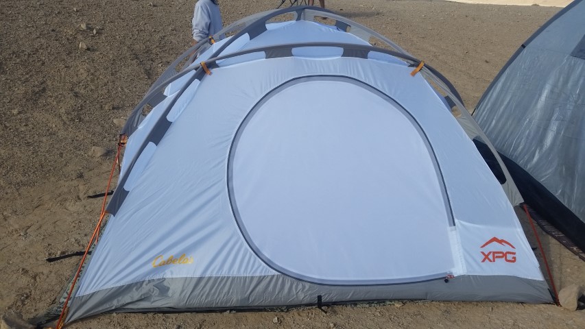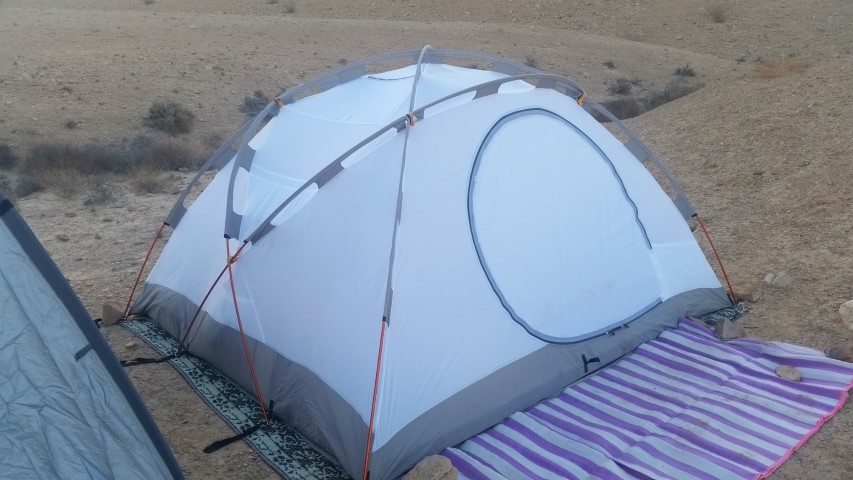 אוהל עמיד מאד ולא מתעוות בפני רוחות גם ללא עיגון ליתדות (מספי משקל הציוד ובעלי הציוד באוהל).