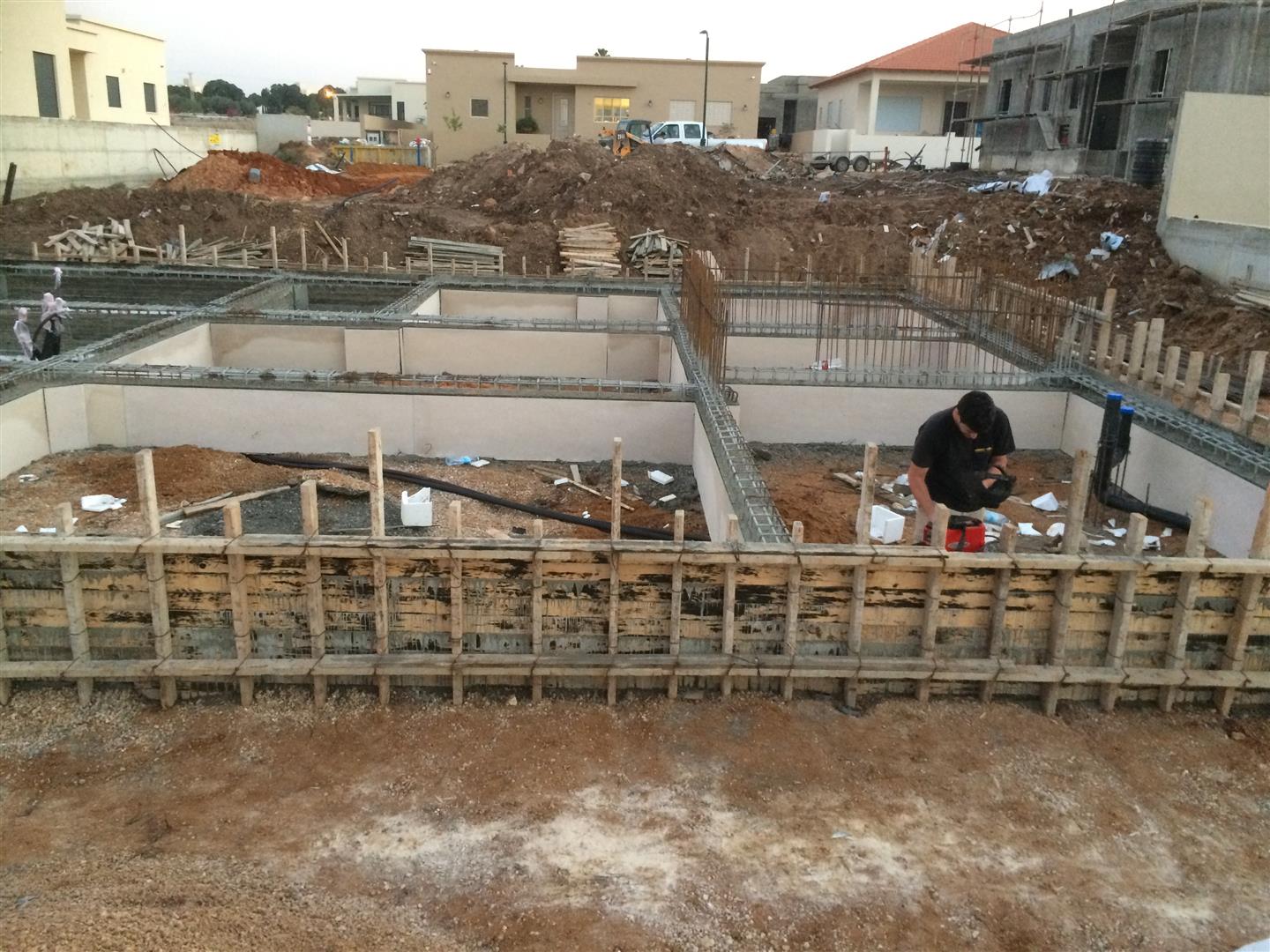לשלב הראשון של הכנת הביסוס, רצפה וממ"ד הבאתי קבלן שיעשה את העבודה (ובמקביל אני עשיתי את הכנות החשמל שרצות מתחת ליציקה והארקת יסוד).
