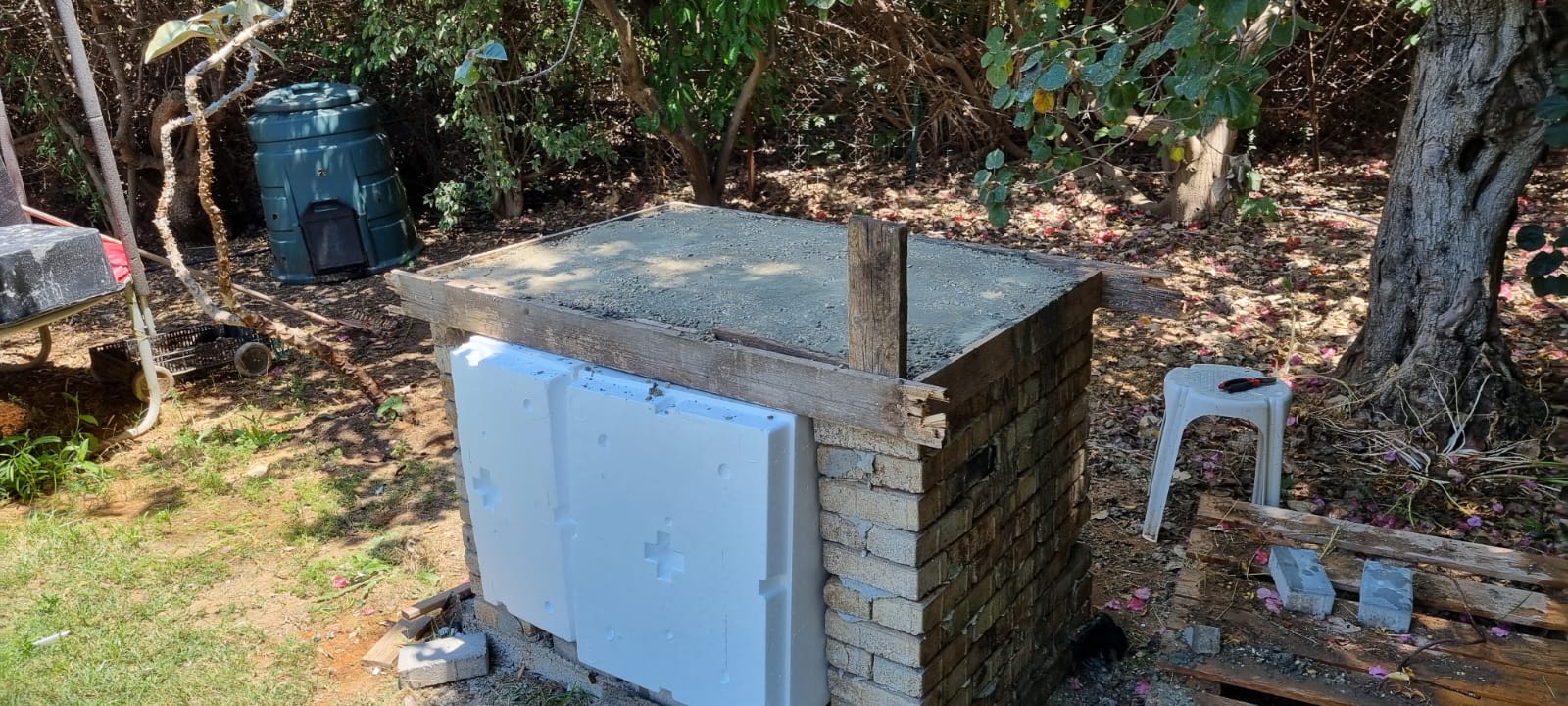 לכל הקהל הקדוש אני יודע שאלו לא החומרים המתאימים אבל היו לי שני משטחים אקרשטיין זרוקים בחצר והיה לי מלא זמן פנוי וכמוך לא רציתי להוציא יותר מדי כסף אז זה מה שעשיתי: