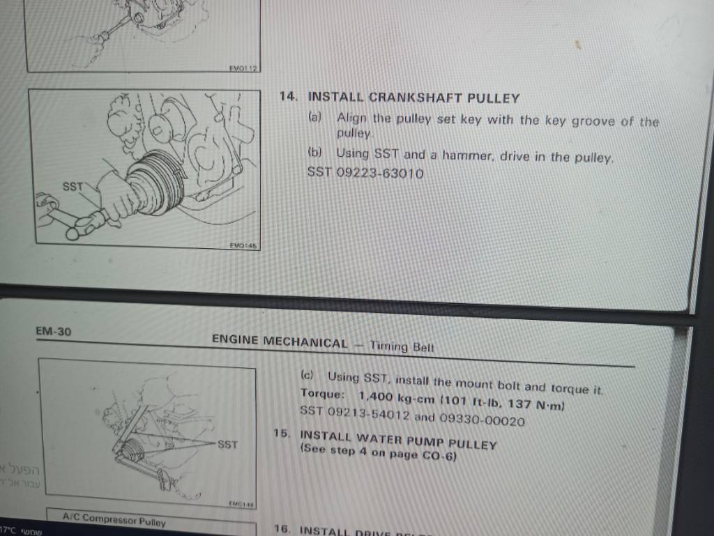 4. צריך לשחרר מעט את בורג הפיבוט של האלטרנטור, נדמה לי שזה 14 מ"מ, את בורג ההידוק של המותחן, 12מ"מ, ואת בורג המותחן, גם 12מ"מ.