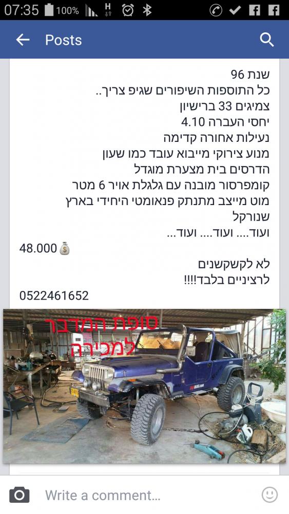 זה לא נושא השרשור. זה יהיה, אולי, כשאמצא סופה. אז אני מזכיר את הנושא - בעל סופה, אתם או חברים, הזדמנות להחליף אותה בצ'רוקי.