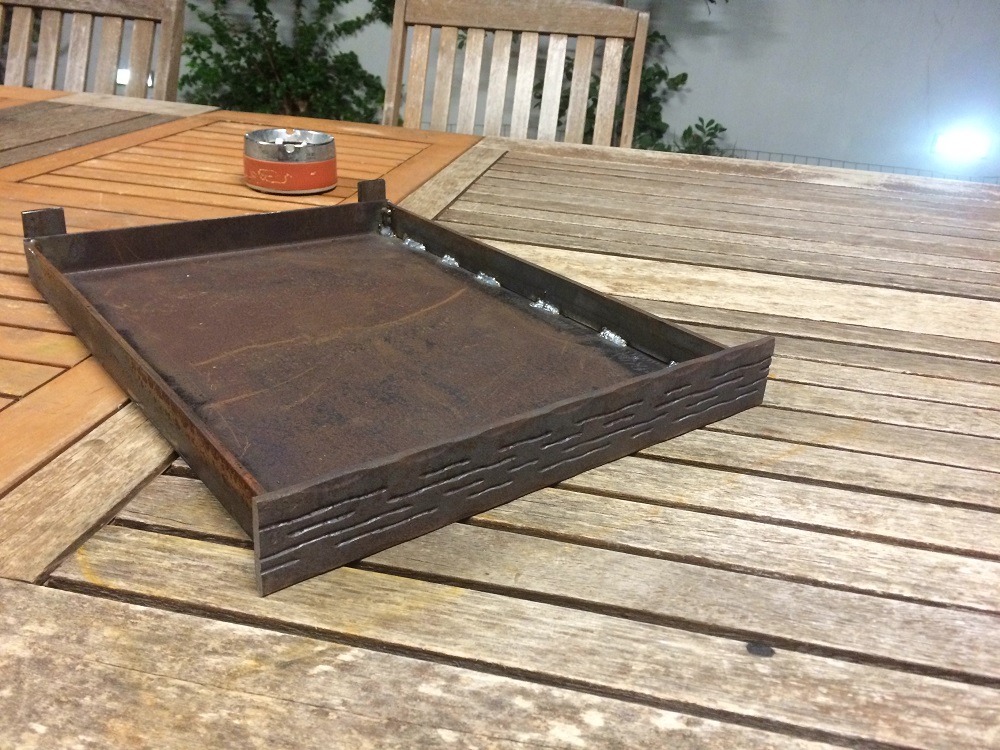 לדעתי האישית ברזל שחור (אבל כמובן נקי) עגול 10 במרווחים של 10 ממ יהיה מאוד יפה ומתאים למעשנה הזו. אולי אפשר לבצע השחרה כמו לסירי פוייקה. מסגרת מברזל שחור מרובע 10.