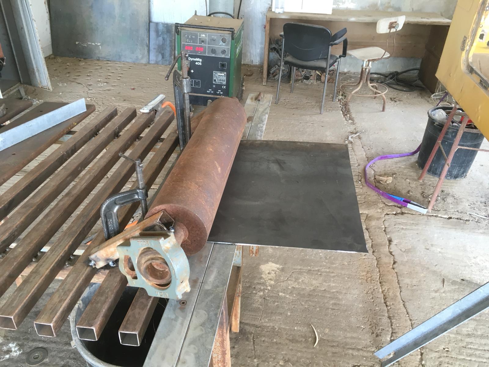 התקנתי לגליל קיר מעצור, הרכבתי אותו על מתקן הכיפוף ועשיתי ניסיון עם פח 2 מ"מ: