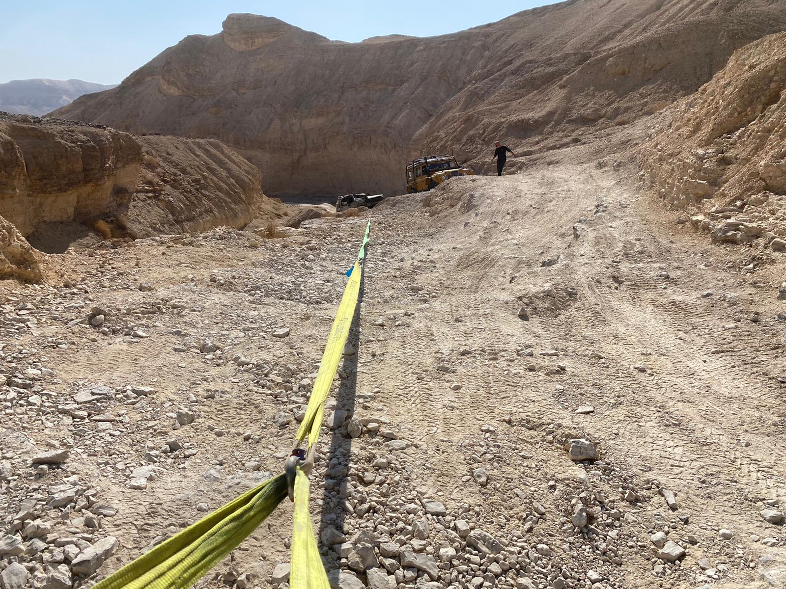 אחרי 100 מטר גרירה אחת מהן מתהפכת על הצד, ממשיכים עוד 3 קמ עד לנקודה