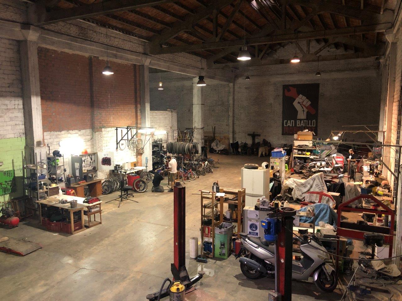 יש סיפור שלם מאחורי הסדנא הזאת וזה דורש הרבה הסברים על התרבות המעט אנרכיסטית בקאטלוניה של השתלטות על מקומות נטושים למען הכלל (ocupas). בגדול, למפעל שננטש קוראים Can Batllo, והוא על שטח ענק ומרכזי בעיר. הוא עמד נטוש שנים למרות הבטחות העירייה לעשות ממנו שטח קהילתי. לבסוף, השכנים פרצו פנימה ולקחו בעלות (יש חוקים שמאפשרים את זה ומגנים עליהם). מפה לשם, העירייה הבינה שעדיף להגיע להסכם לפיו היא נותנת לתושבים אישור להשתמש בחלק משטח המפעל לעשר שנים ובתמורה הם יפנו חלק אחר מהמפעל שיהפוך לפארק ופרויקט דיור מוזל. בנתיים בשטח הקימו התושבים בר קהילתי, בית דפוס במחירי עלות, נגרייה, משחקייה לילדים, מגרשי ספורט, גינת ירקות, מוסך וסופר קטן שתומך בחקלאים מאזור ברצלונה. עוד פרט טריוויה, המפעל היה בבעלות אותה משפחה עשירה מהבית המפורסם של גאודי – Casa Batllo, הוא למעשה בנה אותו עבורם.