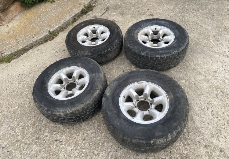 הצמיגים שבדרך אליי הם BF Mud Terrain 235.75.15, מידה אחת יותר גדולה מה-215.80 שיש לי עכשיו (השינוי הזה עובר בטסט בלי עדכון רשיון).