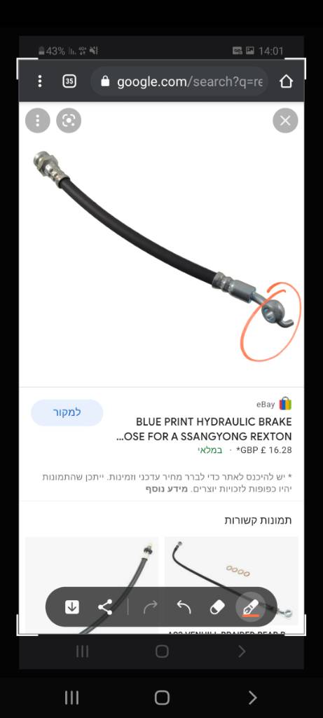חשבתי לחפש חליפי של רכב אחר עם חיבורים זהים ואורך שונה, אבל בטבעת החיבור של הצינור לקאליפר, יש מעיין שגם שלא ראיתי בהרבה רכבים.
