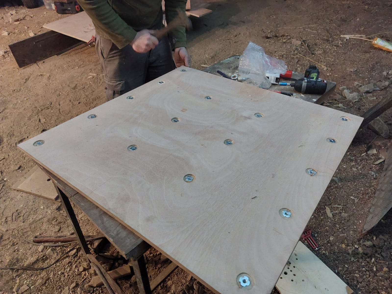 הוחלט על בנית שתי מגירות שבהם יונחו כלי העבודה, והחלפים הקבועים שלוקחים לטיול. מעליהן יונחו ויקשרו שאר הדברים שלוקחים לטיול: