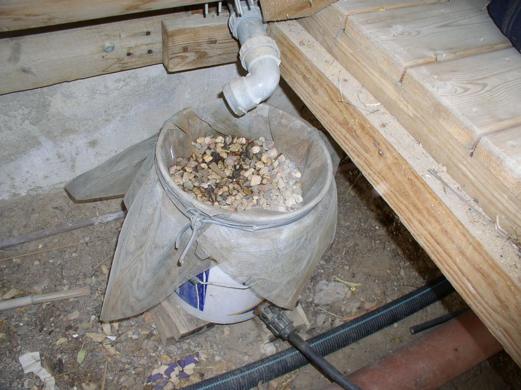 גם את המקלחת והכיור של הקומה התחתונה "הובלתי" החוצה דרך הקיר לדלי עם סינון שמחובר לצינור בזרימה חופשית לגינה (הבית מוגבהה מאט מהקרקע).