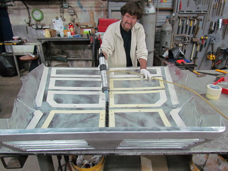 לאחר שהמכסה הודבק המשכתי לדלתות בניתי להן שלדה מפרופיל אלומניום שנחתך בזויות שצריך מכול שלושת המימדים לאחר הריתוך הושתלו ריוונט לחיבור הצירים , הכנתי להן פח כיסוי , והדבקתי את הפח לשלדה עם דבק דו צדדי של 3M , לאחר מכן חתכתי להן פוליקרבונט לחלונות שהדבק עם אותו דו צדדי .