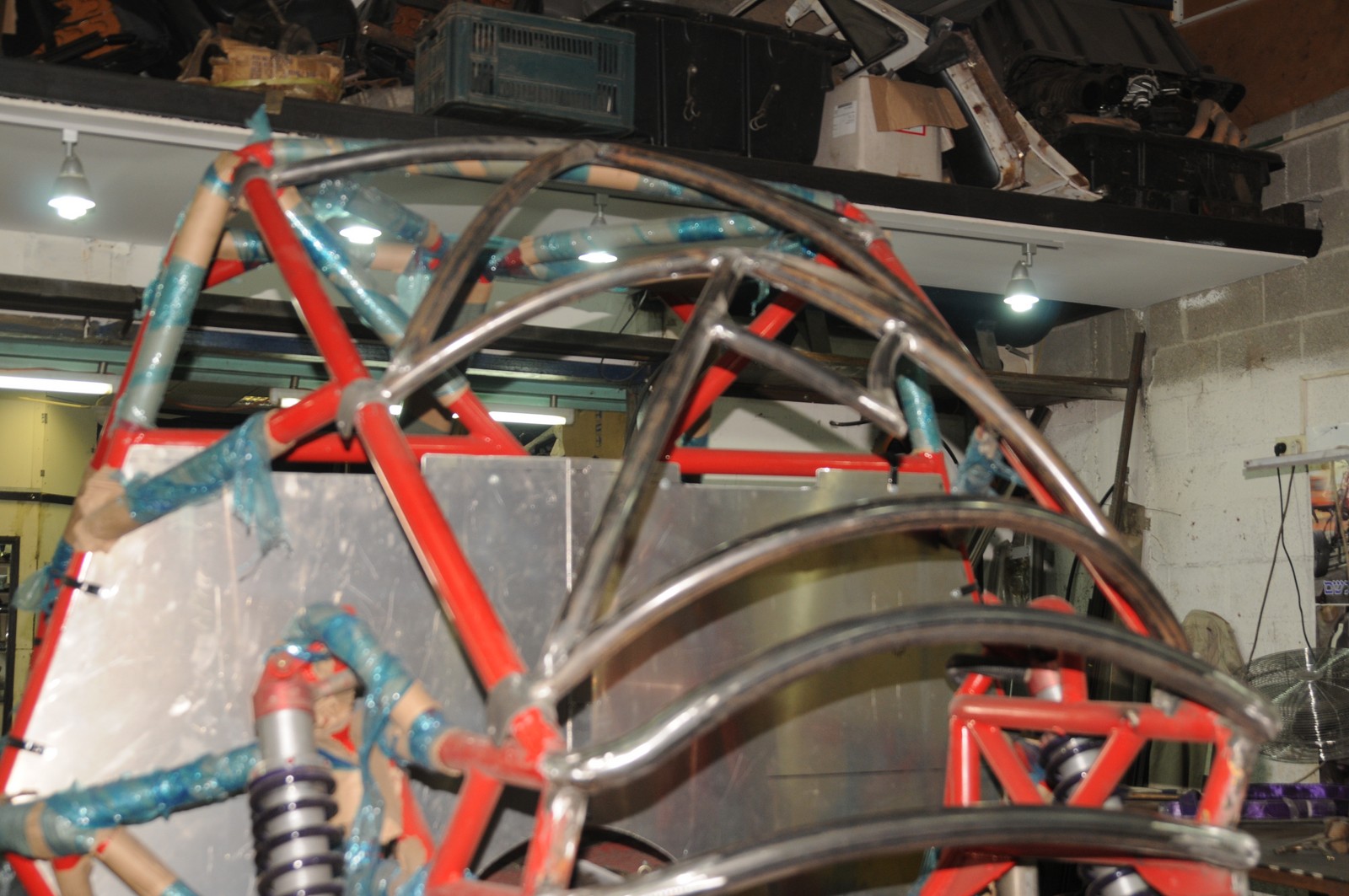 מספר תמונות שמעידות על התקדמות העבודה בסדנה כלוב הבטיחות הסתיים וברגעים אילו ממש צובעים בפילר כהכנה לצבע . מחר תחילת מלכת ההרכבה שכוללת סרנים , מוטות רדיוס , גיר טרנספר . גולת הכותרת בפרויקט ההה מנוע יורכב ביום חמישי ואז ניכנסים לחשמל ואיבזורים הפרונט המעוצב יורכב רק לאחר הכנסת מיכל הדלק החדש שגם הוא הוחלף באחד תיקני .
