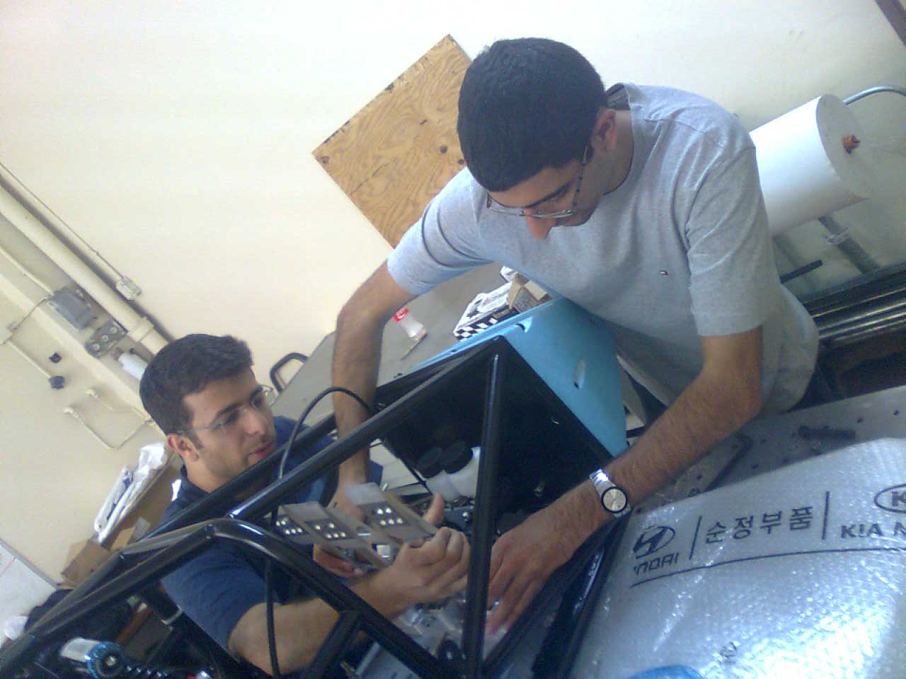 תמונה שנשלחה אתמול במייל לכל הצוות והמנחים... אי אפשר שלא להתרווח בכסא מול המחשב בנחת - הרכב עומד על גלגליו, כל המכלולים במקום, בקרוב גם נוסע! עמית, אחמד, כל חברי הצוות, המנחים, נותני החסות הרבים, והטכניון כמוסד שמאפשר את כל זה - עבודה מדהימה, הרבה מעבר למה שאפשר שהיה אפשר לצפות מ"ירייה ראשונה"! איזה כיף!