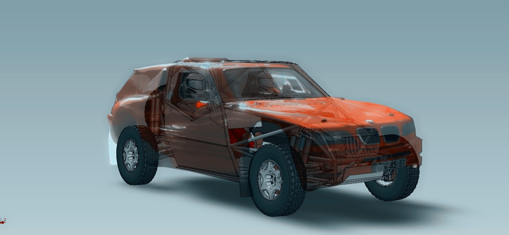 באופן חריג מהמקובל במצב האידיאלי, נסגר המודל אחרי יצור השלדה, שכן מידות רוחב השלדה באיזור המתלים הקידמיים תלויה ברוחב רכבת הכוח באיזור, דבר שניתן היה לקבע סופית רק לאחר וידוא סביבת עבודה סבירה לדריב-שאפט הקדמי, וזוית עבודה סבירה לדריב שאפט האחורי.