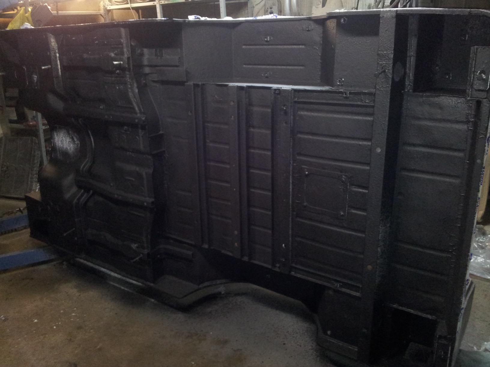 רצפת הבודי שוייפה ונצבעה בממיר חלודה צבע יסוד ועברה זיפות, ואחר כך הבודי חזר למקומו על השסי.