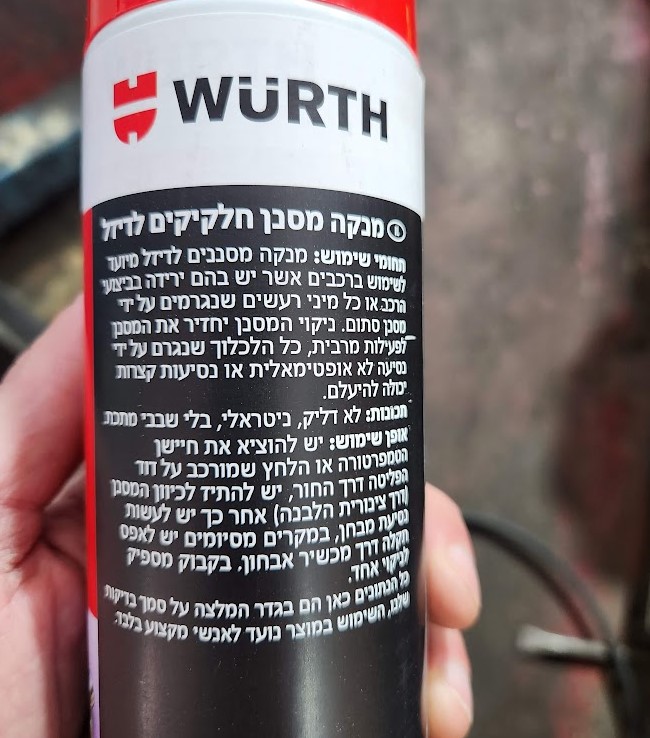 עברו חודשיים. הניקוי המאולץ לא ממש עזר - כלומר, הרכב המשיך ברגנרציה תכופה מדי. כנסיון נוסף לפני כניסה לפירוק וניקוי ואולי החלפה לחלקים חדשים, החלטתי לנסות ספריי ניקוי DPF של וירט לפני חודש. הבקבוק מוזרק כולו דרך קשית מתרם שמגיעה איתו לתוך מסנן החלקיקים אחרי הסרה של אחד מחיישני החום. אחרי זה נסיעה ארוכה.