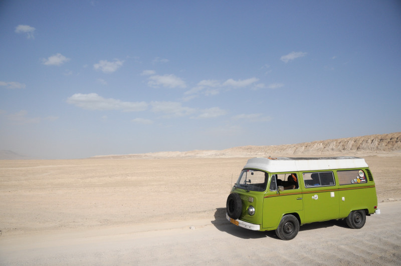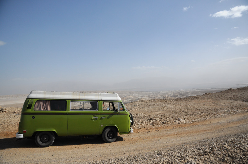 הורדתי מעט אוויר מהגלגלים האחוריים בשביל האחיזה, ובגדול אני יכול לומר שהמתלים של פולקסווגן הם אכן מהנוחים ביותר שיש לנסיעה בשבילי המדבר. גם על ההדורים וגם על האבנים הקטנות והחריצים בשביל - כמעט ולא הזדעזענו בתוך הקמפר, ולא שמענו את כלי המטבח מיטלטלים בארון.