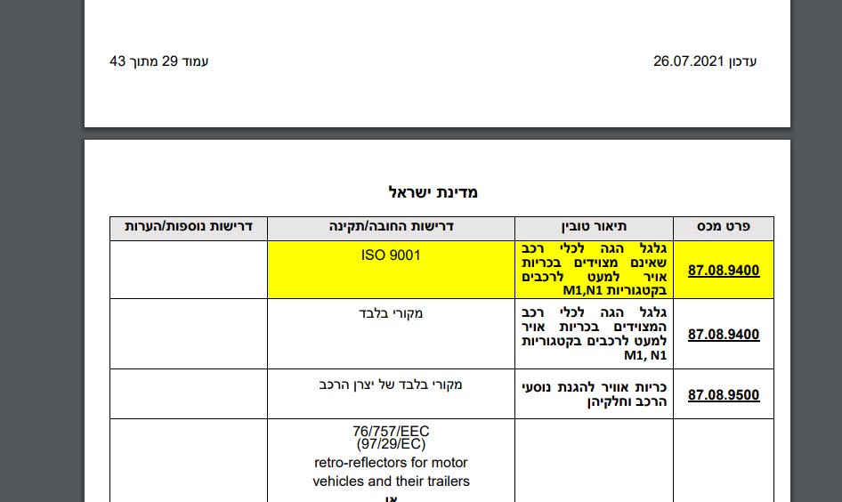 רציתי להתייעץ איתכם בקשר לרכישת מיגון גחון מחו"ל (הסבר מפורט למה למטה למי שמתעניין https://static.xx.fbcdn.net/images/e...5/16/1f642.png. אני יודע שיבוא אישי של הרבה חלקים ברכב מסתבכים במכס עם תקן ובדיקות מעבדה (ולא כדאי להיסתבך). אבל לפי המדריכים של משרד התחבורה (לינק למטה) - לא מופיע שמגין גיחון (skid plates) דורש לעבור תקן או בדיקת מעבדה, אבל אני עדיין לא בטוח, האם מישהו מכיר את הנושא והאם יהיו בעיות מכס ואיך פותרים את זה? תודה רבה!