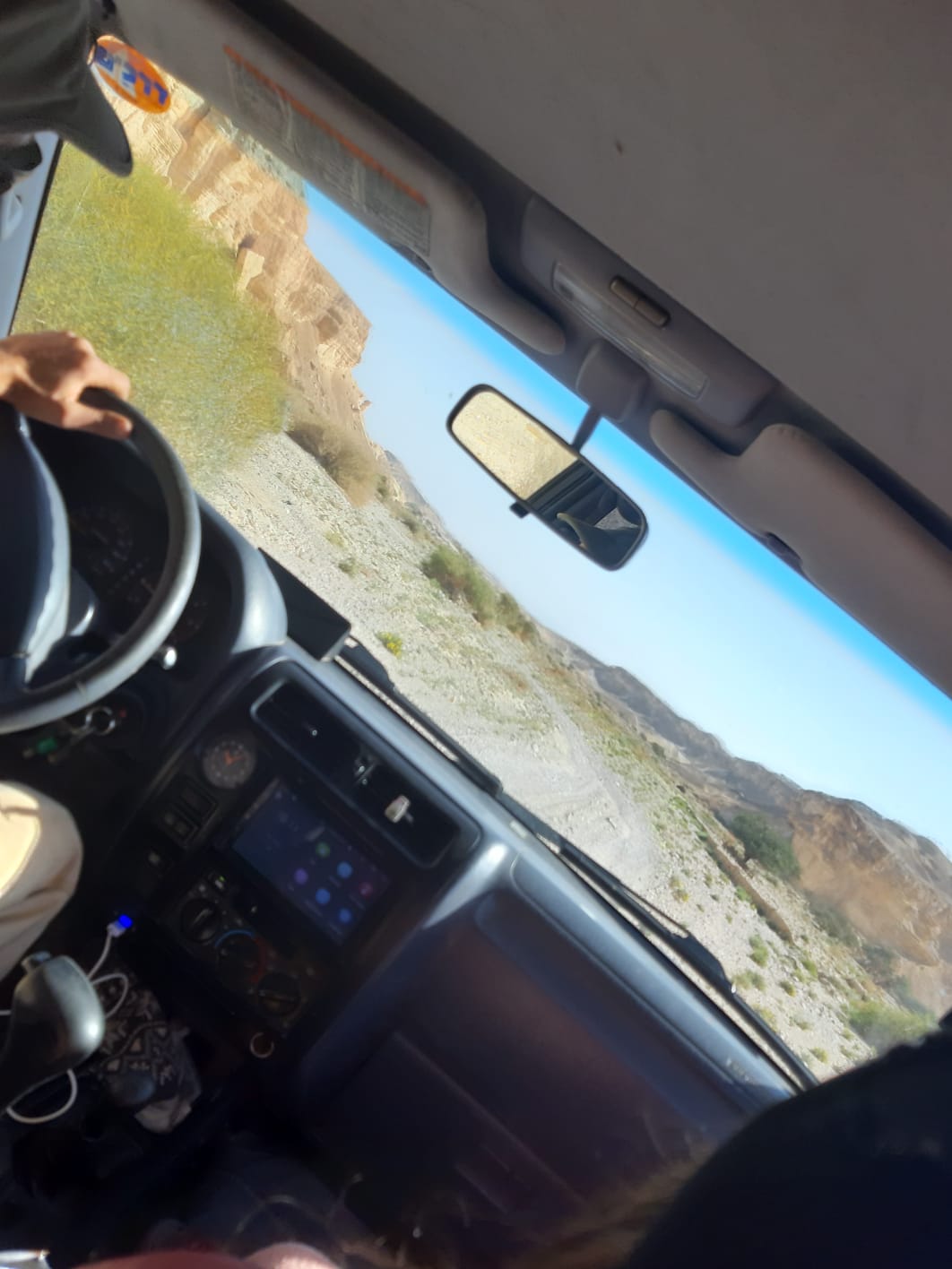 הקרקע נסחפה בעקבות הגשמים האחרונים והדרך קרסה לתוך התהום שהייתה משמאל. נסינו ליישר את הדרך עם מעדרים ומקושים אך כשהסופה עברה, האדמה הרכה גלשה מתחת לחלק האחורי. תגובה מצויינת ומהירה של הנהג פלוס מזל גדול שהיה סלע בצד שנתן מכה לג'נט והקפיץ את החלק האחורי הצילו את המצב ממה שהיה יכול להיות אירוע באמת גרוע.