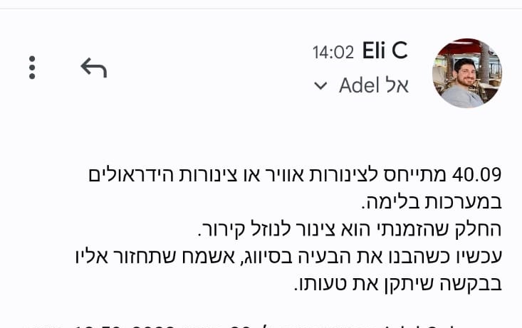 ראוי לציין שהוא היה מאוד סבלני אל מול העצבים שלי, (ואני בן אדם מאוד שליו מטבעי) ואמר לי לשלוח לו למייל פירוט של המשלוח ואת הטענות שלי.