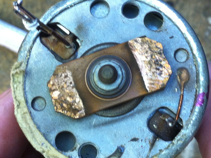 המכסה של הסולנואי לפני הפירוש המשני. רואים את שני הברגים השטוחים שלא קיימים בסטרטרים חדשים יותר - לא אמורים לפרק את המכסה, ורואים את ההלחמות שצריך לפתוח כדי לפרק את המכסה.