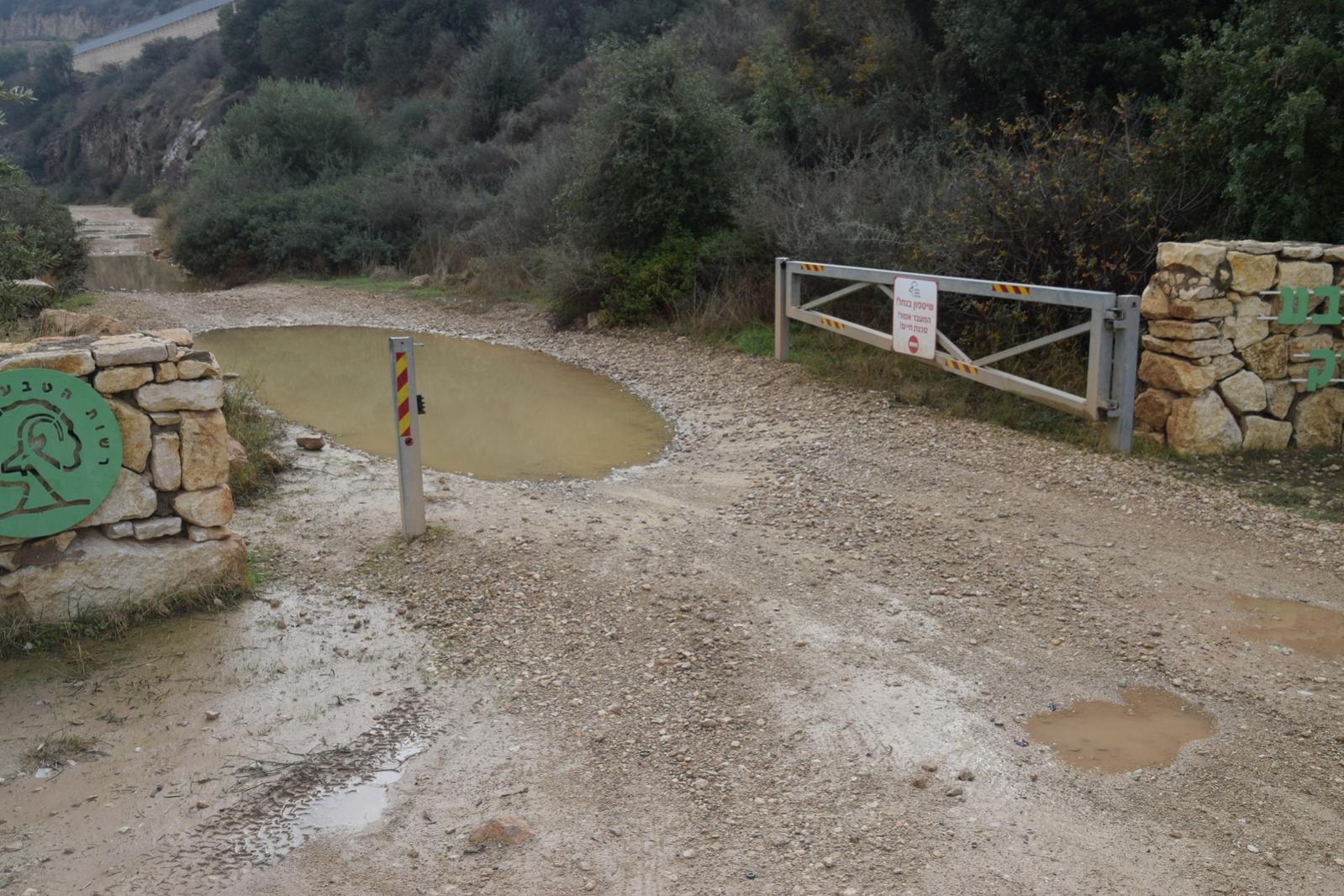 על השלט על השער (הפתוח) כתוב "שטפון בנחל אין מעבר סכנת חיים".