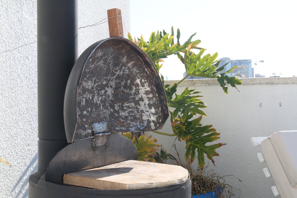 הדלת בהיקף אינה אטומה כלל, וגם הוספתי בה חורים על מנת לאפשר הכנסת אוויר לצורך שיפור הבעירה.