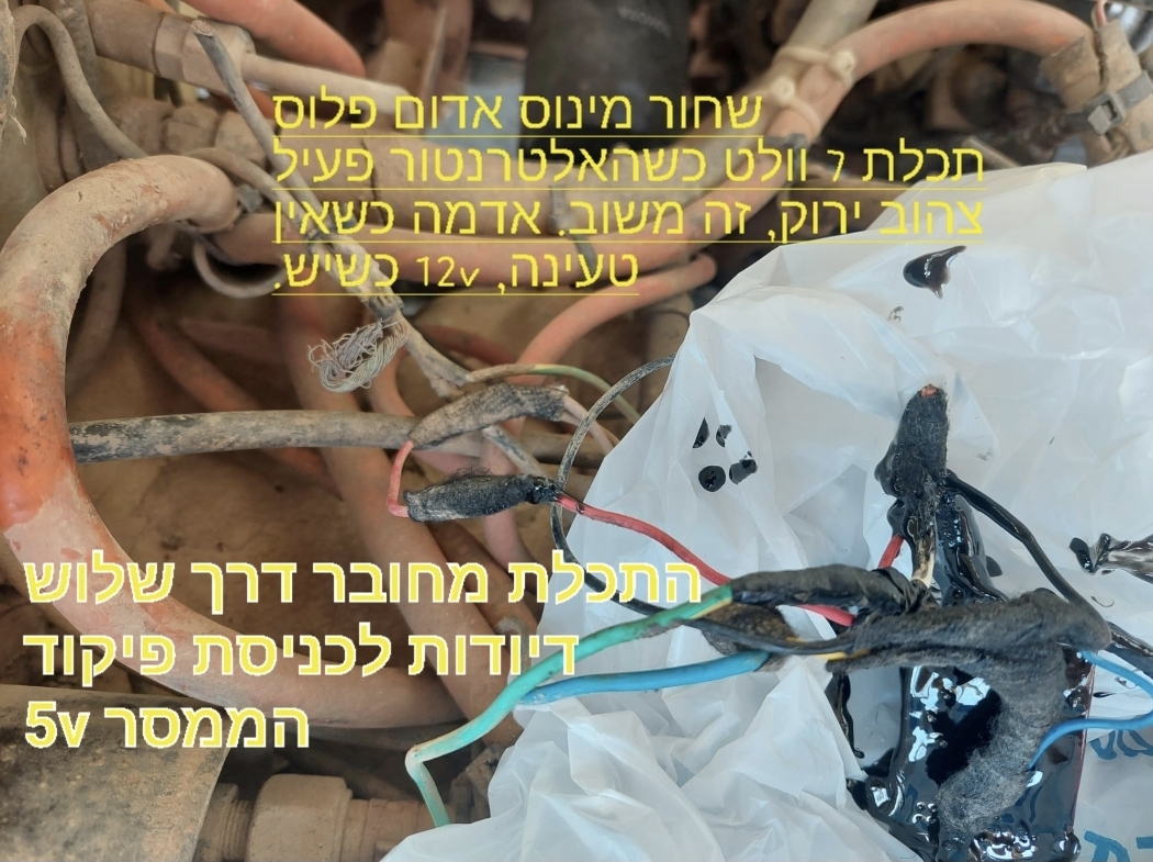 בעקבות שיחה עם חבר שהתקשר אליי כדי להתייעץ בעניין הזה גיליתי ברשומות שלי שעשיתי עדכון ביוני 2023. החלפתי לממסר 6 וולט, שעל החוט שהולך אל הפיקוד שלו חיברתי שלוש דיודות בטור כדי להוריד את המתח מהאלטרנטור מ7 וולט ל5 וולט.קובץ מצורף 149960
