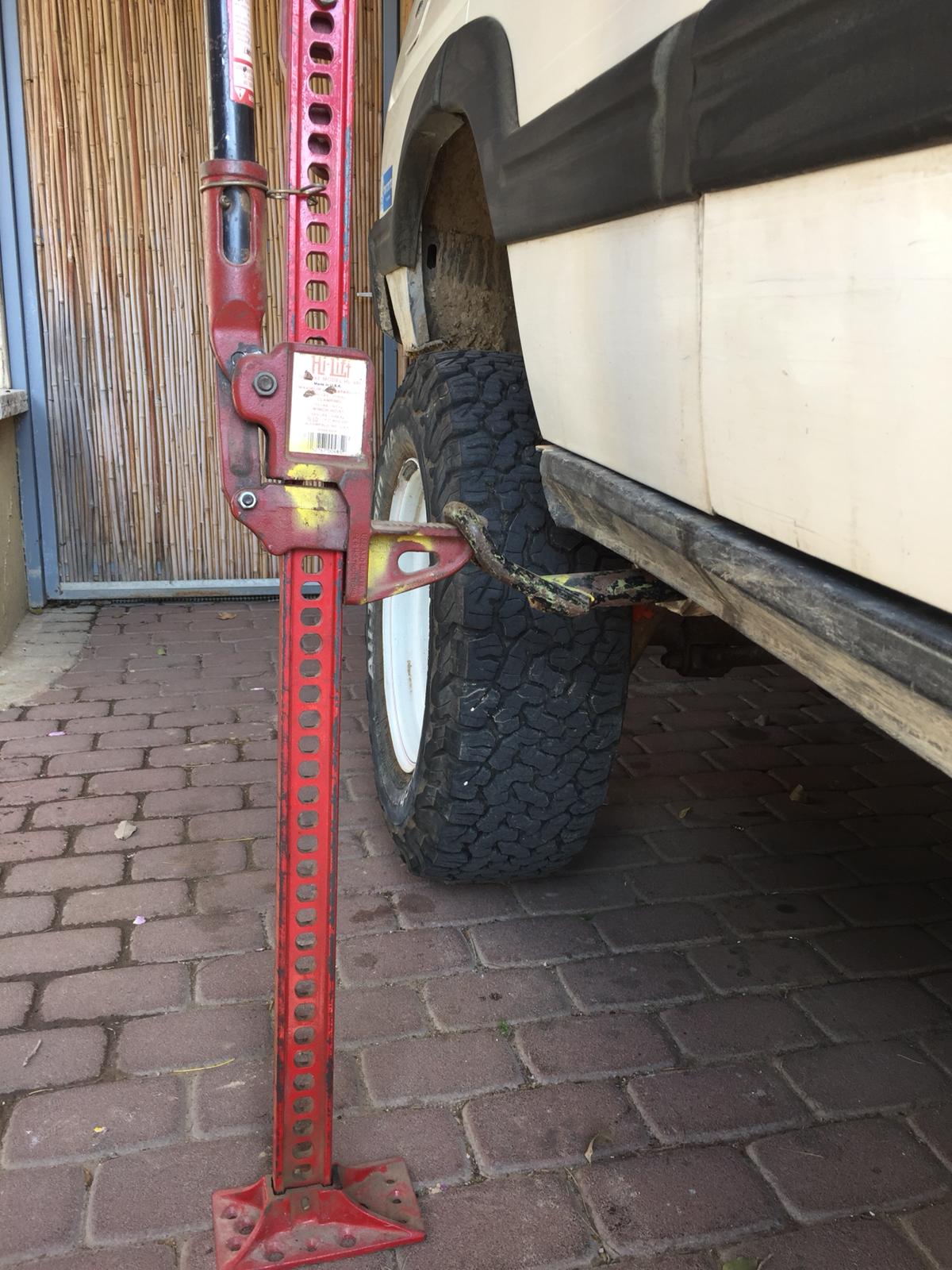 או לייצר אחד. בדיפנדר היה לי כזה שעשוי מפרופיל שנכנס בול בתחתית ההיליפט (במקום הבסיס המקורי) שמרותך לפלטת פלדה ובה חורים שמתאימים לגוז'ונים של תושבת הגלגל ספייר. הפלטה היתה מספיק גדולה כדי למנוע שקיעה של ההייליפט בבוץ. ובמידת הצורך התאימה גם להלבשה על הגלגל ספייר שנזרק על הרצפה בשביל בסיס אפילו יותר רחב (מעולם לא התעורר הצורך).