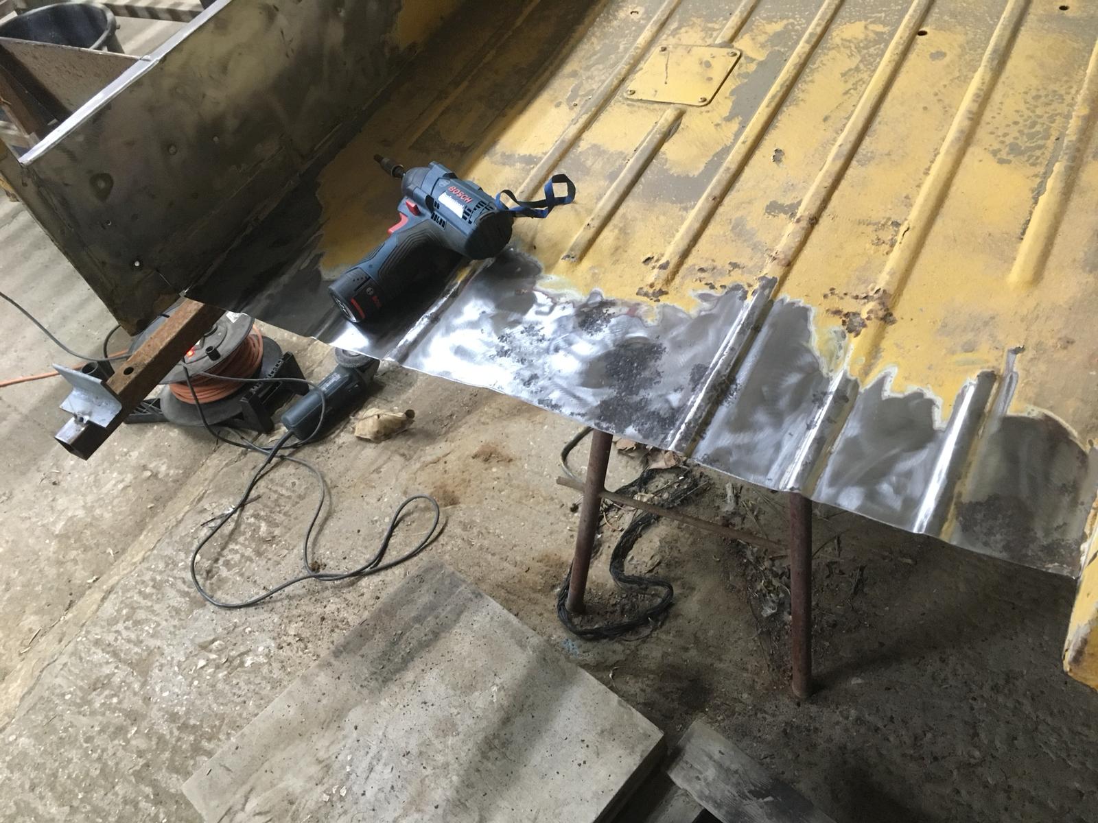 ראשית הסרתי לחלוטין את הקורה האחורית של הבודי, הסרתי צבע באזור החיתוך ופירקתי את הפינות הרקובות: