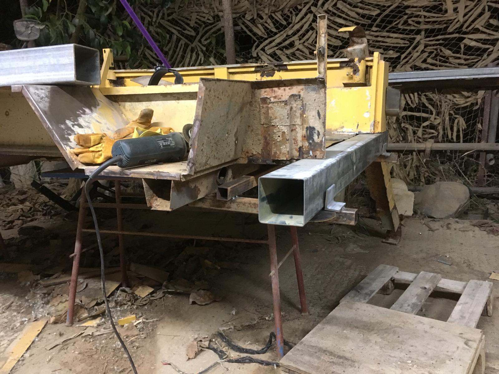 אני אתחיל מהזנב. הקורה האחורית כולה נפרדת מהבודי ובמקומה יושתל פרופיל 100X100 בעובי דופן 2 מ"מ, הוא יהיה הבסיס לעיגון תושבות הבודי, קשת הכלוב האחורית ועיגון הפח שחזיק את מנגנון ההרמה: