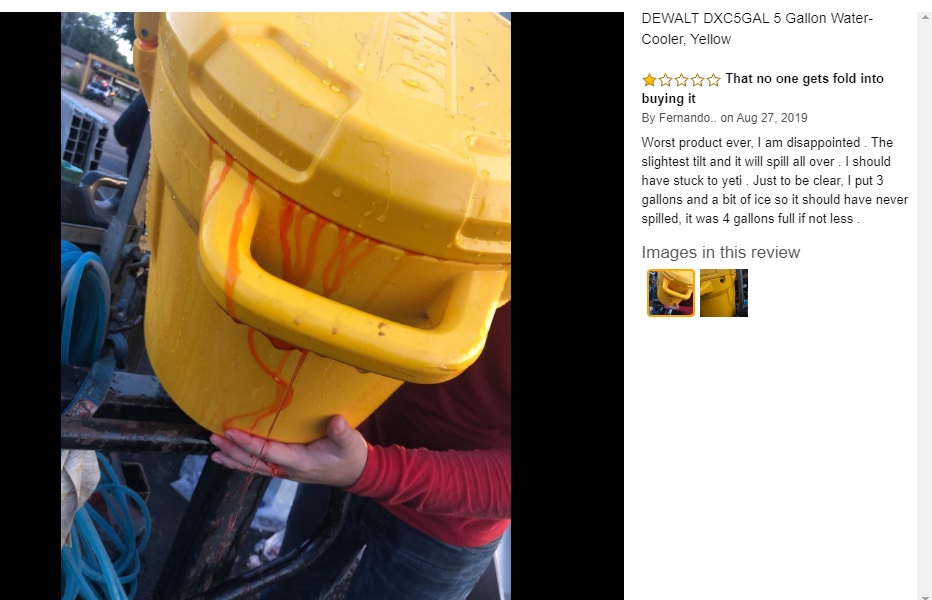 DEWALT DXC5GAL 5 Gallon Water-Cooler, Yellow https://www.amazon.com/dp/B07G7C58HJ..._vZBSDbKW6GHP5