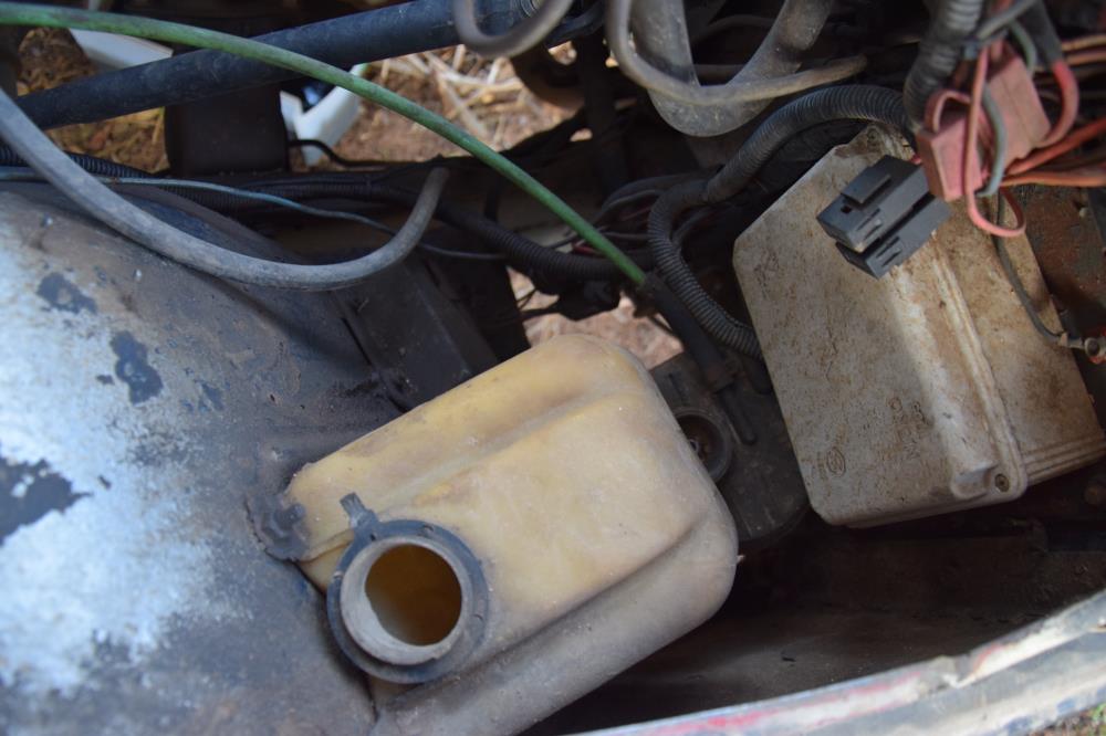 את מיכל המתיזים השבור מצאתי - מה זה מתחת? זה שיוצא ממנו צינור ירוק - שלא מוביל לשום מקום