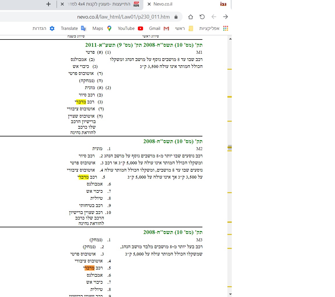ראה בתגובה מס' 10 בשרשור הנוכחי, תקנה הדורשת רישיון D לרכב מדברי שמשקלו עולה על 3500 ק"ג.