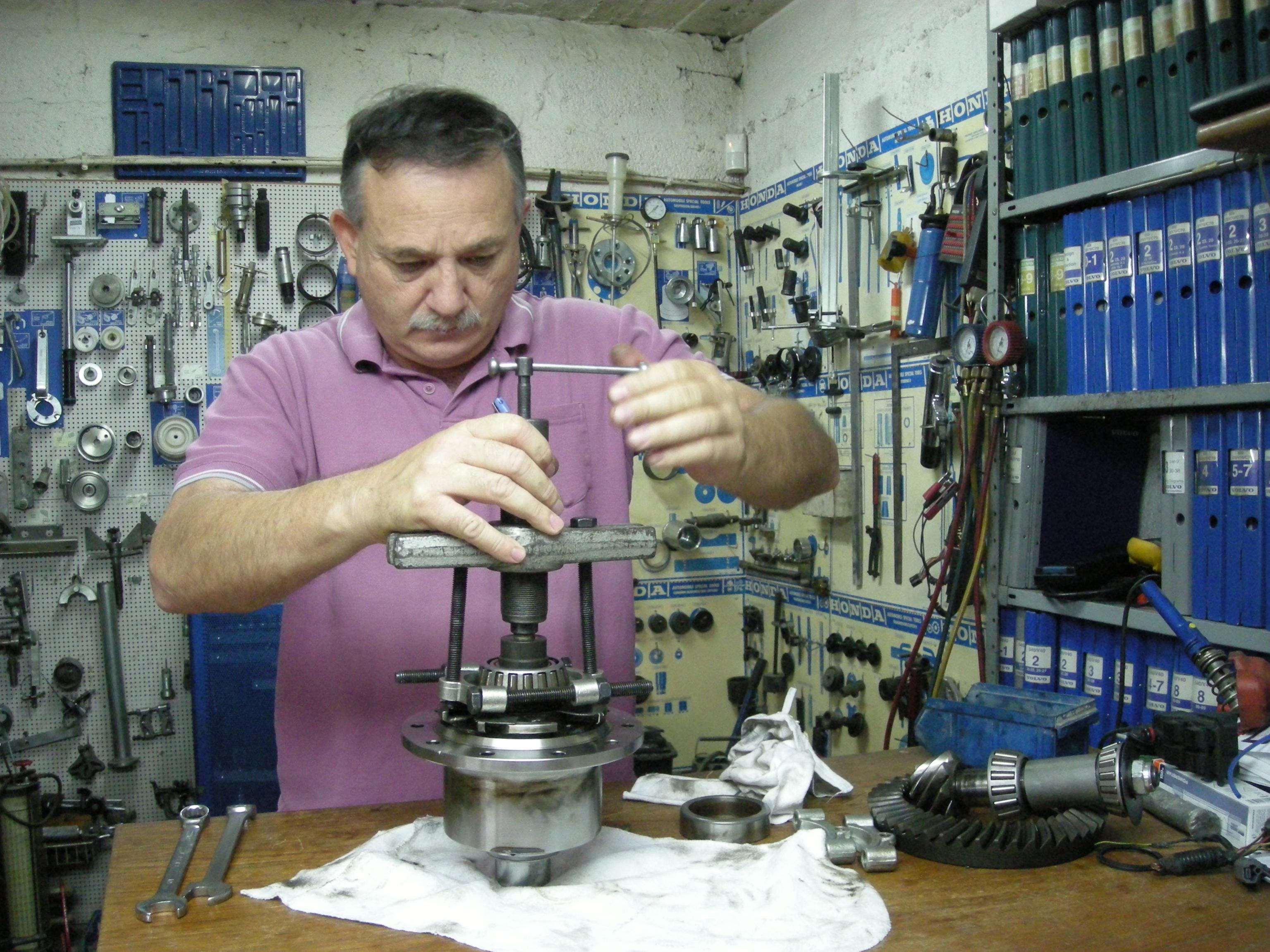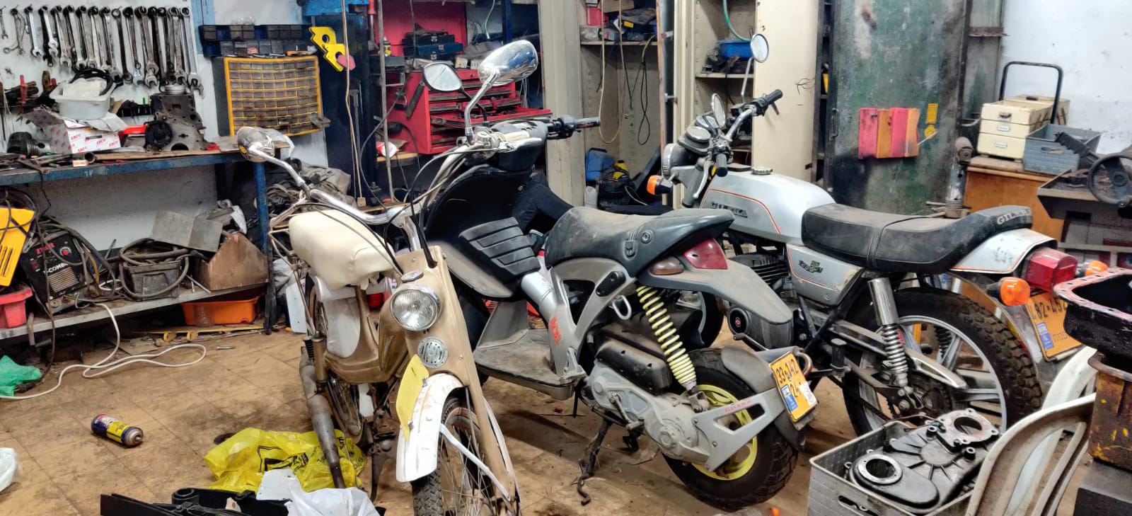 המנוע על השולחן - איסוזו דיזל שני צילינדר השייך לבובקט הקטן ( 1982 - מקורי ועובד ) , מנוע נוסף מפורק של הטילון , הסיקס עומד בחוץ על בוקים מחכה להחלפת מיסבים בסרן הקדמי .