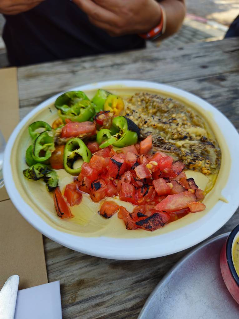 בהגיענו לצמח, הבטן רמזה שהיא רוצה תשומת לב ונכנסנו לחומוס 90 למנה הגונה של חומוס עם חציל קלוי וחריף ומנה של עלי גפן מגולגלים.