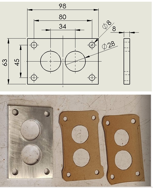 מידול מרווח החורים בצד המנוע היה קל, מרווח החורים של המנוע הוא ברור ויש לו תקן שניתן למצוא באינטרנט, לכן לא ממש צריך למדוד אלא רק לוודא מדידה.