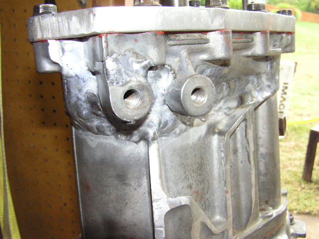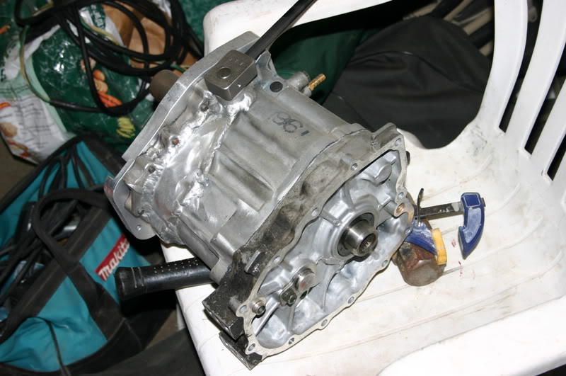 מפרקים את הטרנספר, מנסרים מההוזינג את החלק עם היציאה (תמונה 1). את השארית שהתקבלה מעבדים כך שתשלים את החלק הפתוח של ההוזינג (תמונה 2,3). לאחר מכן מרתכים את החתיכה, תוך שימוש בפלטה המתאמת, כדי להתאים את תבנית החורים של ההוזינג החתוך, לחתיכה שאותה משלימים (תמונה 4). ריתוך בהחלט לא פשוט. לא חקרתי לעומק האם נדרשת עבודה על הציר המרכזי של יחידת ההפחתה. אם נדרשת עבודה כזו צריך לתת עליה את הדעת (יכול להיות שבחלק מהקיטים מקבלים את החלקים הנדרשים), עיבוד שבבי לציר קיים לא יעשה איתו חסד ואני מציע להימנע מכך.