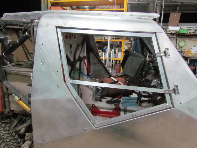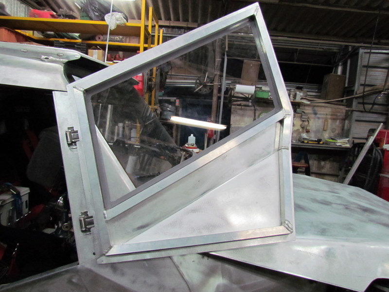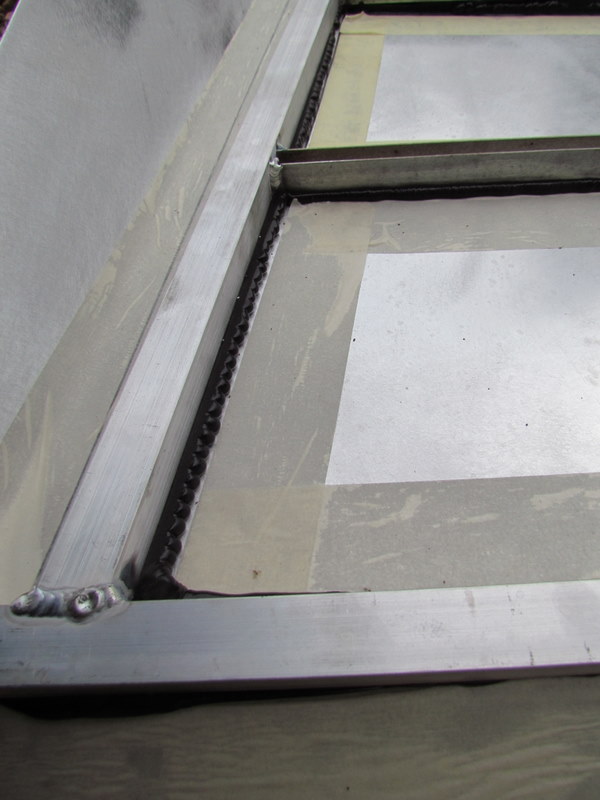 לאחר שהמכסה הודבק המשכתי לדלתות בניתי להן שלדה מפרופיל אלומניום שנחתך בזויות שצריך מכול שלושת המימדים לאחר הריתוך הושתלו ריוונט לחיבור הצירים , הכנתי להן פח כיסוי , והדבקתי את הפח לשלדה עם דבק דו צדדי של 3M , לאחר מכן חתכתי להן פוליקרבונט לחלונות שהדבק עם אותו דו צדדי .