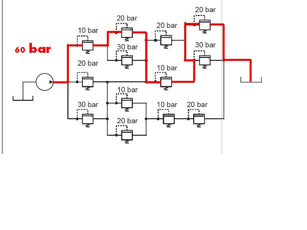 והסבר : נמרוד וחנן השמן לא זורם מהסוף להתחלה אלה מהמשאבה אל השסתומים הרשונים , ומכאן שהשסתום בעל הערך הנמוך ביותר יפתח שזה שסתום עם 10 באר וכן אלה לכן צריך 60 באר גם בניסוי על הטסטבנד זה היה כך .