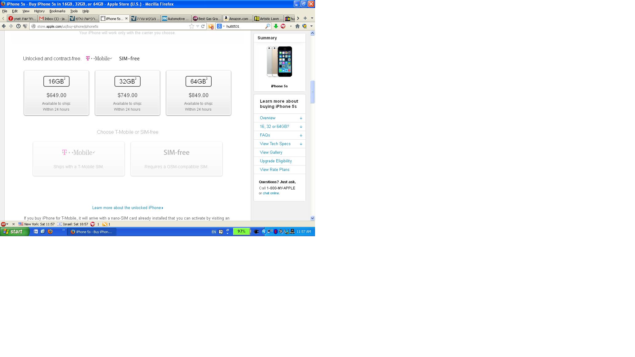 ואלה המחירים של אייפון 5c פתוח (המס, כנ"ל):