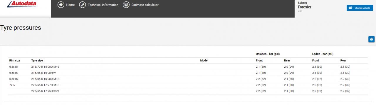 מידות צמיגים לפורסטר MK3
