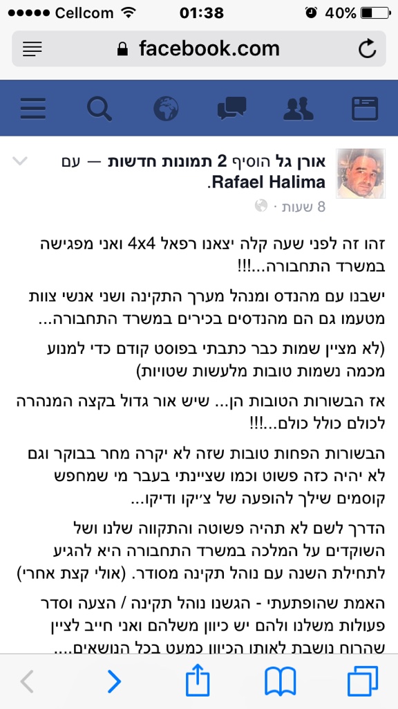 לאור הישיבה שהתקיימה אתמול והנחת העבודה המתקיימת כי עולם הג׳יפאות בישראל סוף סוף עושה צעדים קדימה.