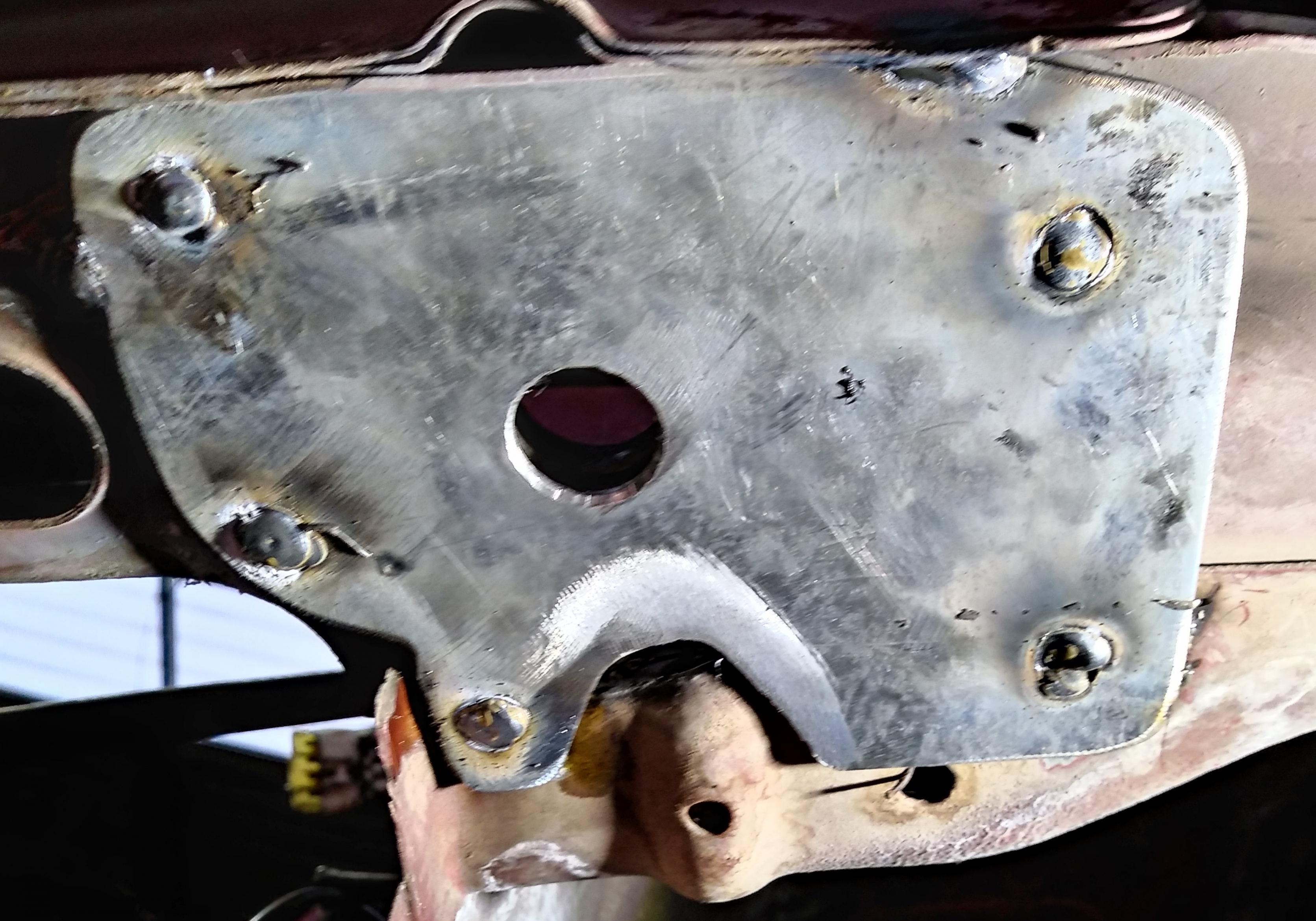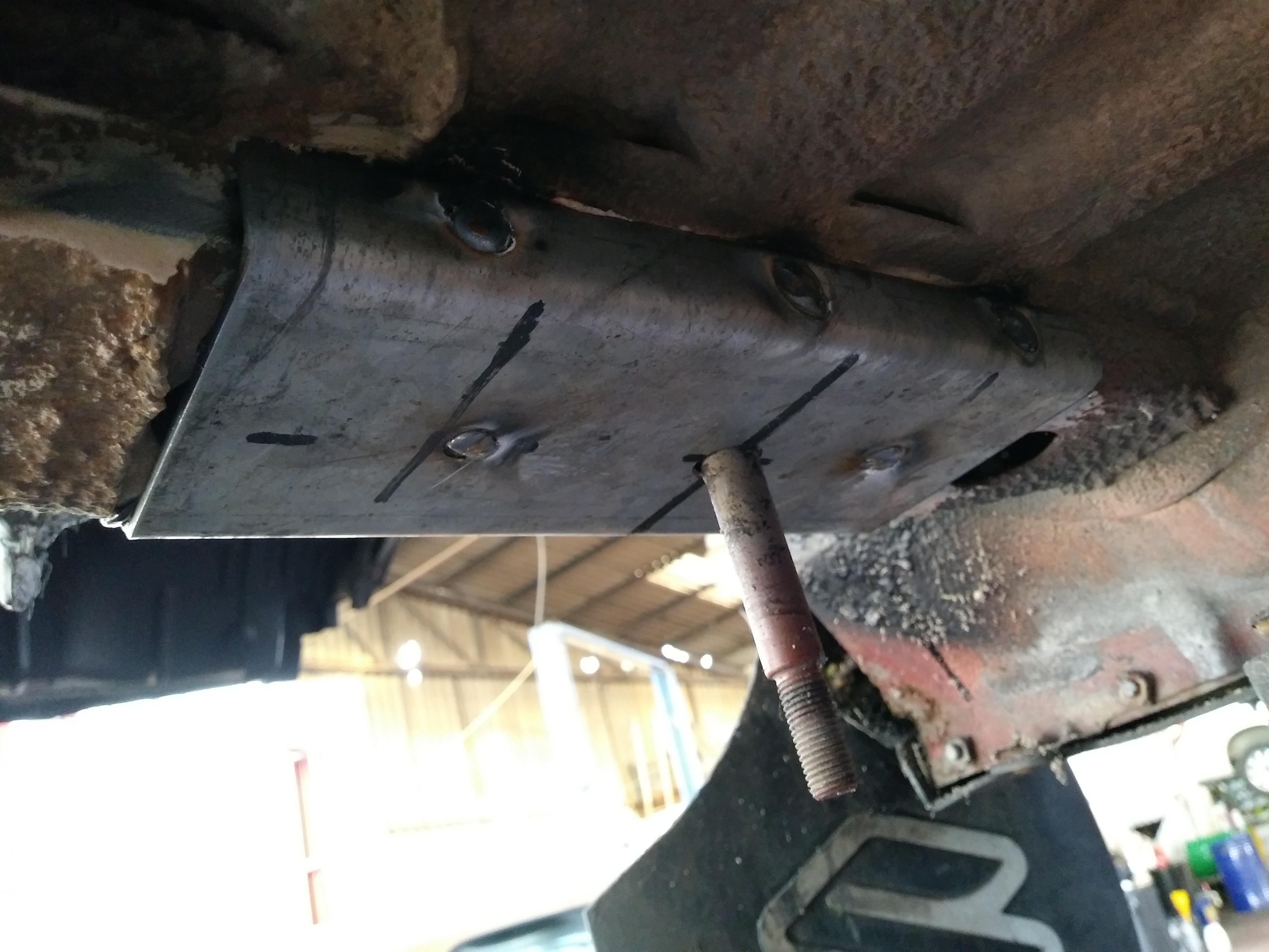 החיזוקים לתושבות בצד המרכב הוכנו ורותכו למקומם. בין החיזוקים לתושבות המקוריות נמרח סיליקון להגדלת שטח המגע ופיזור העומסים: