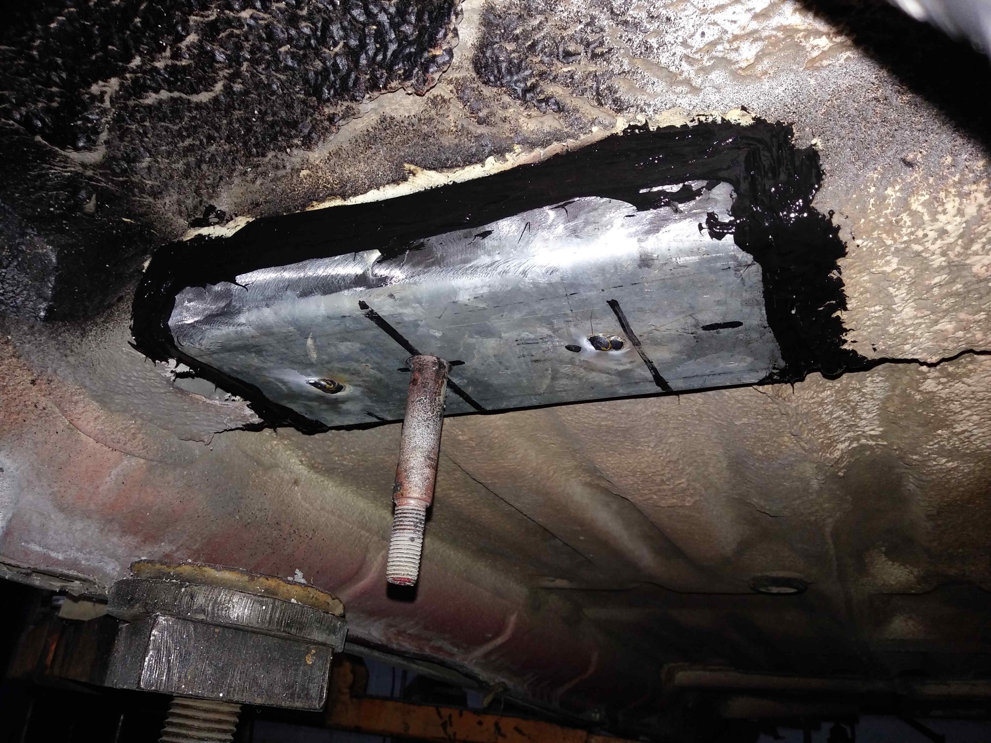 אחרי כל התיקונים והחיזוקים, יקבל כל המרכב ציפוי זפת מלא על כל הגחון, לפני שיועבר לשלדה של הויטארה הלבנה ...